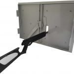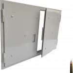 It is a safety three-layer steel shutter with ballistic coating. It is manufactured with high precision. Multiple safety for closing and securing against opening in case of hinges being cut off are used. The shutter can safely withstand 9 mm calibre bullets. By closing the shutter, the space is almost hermetically sealed. The shutters are equipped with a canopy with a hinged flap, which can also be used for ventilation of the building. The shutters are manufactured using a CNC laser, TIG welded, sandblasted, and finally powder coated (each part separately) before being assembled and calibrated. The price is set for the 600x900mm size in the range (+ - 10%) of the area. The price includes project modification according to customer's dimensions, for a minimum series of 3 shutters.