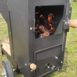 Udírna (gril) o objemu cca 100 litrů. Robustní vypracovaná udírna s kamínky. Vyrobena ze silných plechů (1,5 až 3 mm), šrouby i osa jsou z nerezu, kolečka ložisková. Velmi snadná manipulace, uklidit ji zvládne i malé dítě. Možnost ohřevu a vaření na plotýnce. Hlavní výhodou oproti většině udíren je snadná a přesná regulace, rošt pro hoření odděluje topeniště od výsuvného popelníku.